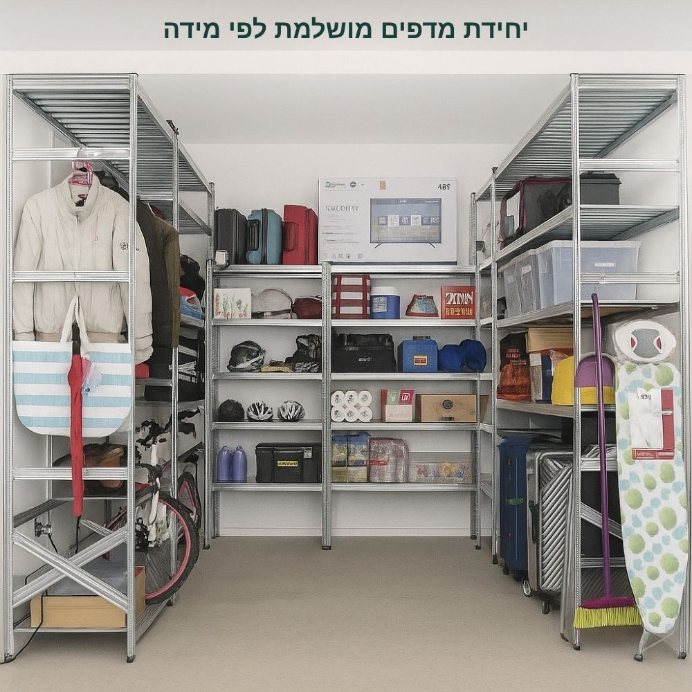 יחידת מדפים מודולרית במידות: 98×40×197ס"מ, הכוללת 4 קומות מדפים לשימוש ביתי, משרדי או תעשייתי.